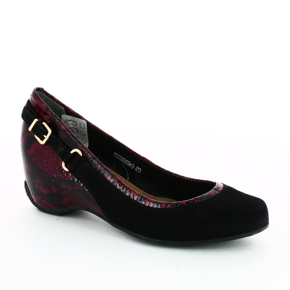 996*02JC.6,Туфли женские,нубук/кожа черный/красный