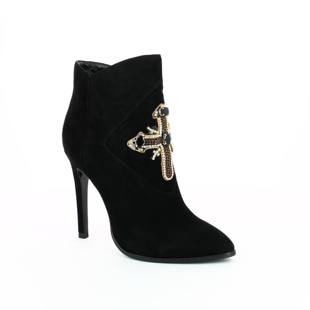 W30*59T-548R,Ботильоны женские,велюр _черный